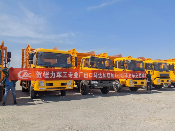 湖北程力汽車(chē)120輛擺臂式垃圾車(chē)出口馬達(dá)加斯加,為保護(hù)綠色地球打贏藍(lán)天保衛(wèi)戰(zhàn)貢獻(xiàn)中國(guó)力量