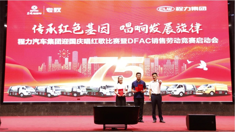 今日中國,欣欣向榮,江山如此多嬌,我們用拼搏的汗水,把捷報頻傳寫在美麗中國的答卷里;今日中國,人民豪邁勇毅前行砥礪前行,我們用實干成就夢想,把溫暖人心的故事,寫在幸福中國的答卷里;今日中國,前程似錦,在實現(xiàn)中華民族偉大復(fù)興中國夢的新征程上,我們昂首闊步,把日新月異的發(fā)展,寫在奮進中國的答卷里;征途漫漫,惟有奮斗,讓我們一起唱響中國夢祖國頌的歡歌,共同祝福偉大的祖國蒸蒸日上、和諧美好。 程力汽車集團董事長程阿羅在盛會上致詞,向參加唱紅歌比賽的全體參賽隊員和與會代表,致以了親切問候!對東風(fēng)股份有限公司的領(lǐng)導(dǎo)嘉賓及東風(fēng)股份歌唱團的成員,表示了衷心的感謝!同時,程董祝福全球用戶及上游下游產(chǎn)業(yè)鏈供應(yīng)商、服務(wù)商,海外華人華僑、港澳同胞、臺灣同胞國慶節(jié)快樂,祝福祖國繁榮富強,人民幸福安康。 東風(fēng)汽車股份有限公司營銷總部專用車事業(yè)部總經(jīng)理龔大為先生,作了熱情洋溢的講話。龔總與大家一起回顧了東風(fēng)公司與程力汽車集團,肩并肩攜手共同深耕專用汽車市場的發(fā)展歷程,描繪了共同開創(chuàng)美好未來新希望、新征程、新目標。 程力汽車集團與東風(fēng)股份已經(jīng)攜手并肩走過了16年,程力與東風(fēng)彼此同心同德,相互陪伴、相互學(xué)習(xí)、相互成就,東風(fēng)股份將始終堅守“貢獻社會,成就伙伴”的初心,與程力一路同行,共同推進國內(nèi)專改行業(yè)的技術(shù)進步,為專改行業(yè)的高質(zhì)量發(fā)展做出了卓越的貢獻。東風(fēng)股份作為中國汽車行業(yè)大型央企,為本次活動特派東風(fēng)股份合唱團,獻唱《團結(jié)就是力量》、《光榮與夢想》。 DFAC以先進的生產(chǎn)技術(shù),過硬的產(chǎn)品質(zhì)量,無憂的售后服務(wù),深得終端用戶的青睞;東風(fēng)股份營銷總部專用車事業(yè)部特級講師曹紹成老師,為啟動會帶來東風(fēng)股份重磅產(chǎn)品推介。 在唱紅歌比賽環(huán)節(jié),程力汽車集團公司共有10個演出團隊參加了比賽,他們分別是:程力底盤供銷總公司參賽團隊參賽歌曲為《我們走在大路上》、程力專用汽車股份有限公司參賽歌曲是《國家》、程力應(yīng)急裝備制造湖北有限公司參賽節(jié)目是《大中國》、程力特種車輛制造有限公司參賽歌曲是《今天是你的生日中國》、程力隨車裝備制造湖北有限公司參節(jié)目是《歌唱祖國》、程力新能源汽車制造股份有限公司參謀歌曲是《明天會更好》、集團財務(wù)管理中心參賽的歌曲是《燈火里的中國》、善建金融服務(wù)有限公司參賽的節(jié)目是《我宣誓》、程力汽車制造有限公司演唱的歌曲是《我和我的祖國》、程力國際貿(mào)易有限公司參賽的歌曲是《沒有共產(chǎn)黨就沒有新中國》。 我們用歌聲追隨的光,是五角星的星光,星光所到之處,皆是華夏最美的模樣,愿以寸心寄華夏,且將歲月贈湖海。在這個特別的日子里,讓我們發(fā)自內(nèi)心的真誠祝福,祝福偉大的祖國母親,生日快樂! 東風(fēng)股份營銷總部專用車隨州大區(qū)總監(jiān)王意翔先生為我們發(fā)布本次程力集團&東風(fēng)股份底盤銷售勞動競賽方案。 東風(fēng)汽車股份有限公司營銷總部專用車事業(yè)部總經(jīng)理龔大為(右三)、程力汽車集團董事長程阿羅(左三)、程力汽車集團黨委書記袁昌才(左二)、程力銷售總公司常務(wù)副總經(jīng)理袁美玲(左一)、程力汽車集團總經(jīng)理朱武(右二)、東風(fēng)股份底盤事業(yè)部總經(jīng)理楊金柱(右一),出席了“聚勢向前、東風(fēng)雄起”DFAC銷售勞動競賽啟動儀式。 集團公司黨委書記袁昌才(左一)、集團總經(jīng)理朱武(右二)、集團銷售總公司常務(wù)副總經(jīng)理袁美玲(右一),分別為紅歌比賽三等獎獲得者底盤公司領(lǐng)隊李曉蔓(左二)、新能源公司團隊黃辰龍(左三)、汽車公司團隊張弘(右三)代表頒獎。 東風(fēng)汽車股份有限公司營銷總部專用車事業(yè)部總經(jīng)理龔大為先生(右一),為紅歌比賽二等獎獲得者程力專汽公司領(lǐng)隊李濤(中)、財務(wù)中心團隊王維維代表頒獎。 程力汽車集團公司董事長程阿羅先生為一等獎獲得者善建金融全體成員共同頒獎,并合影紀念。 程力汽車集團公司董事長程阿羅先生,為紅歌大賽特等獎----《精神風(fēng)范獎》獲得者東風(fēng)股份合唱團代表頒發(fā)證書,并合影紀念。 程力汽車集團中高層領(lǐng)導(dǎo)上臺集體合唱《程力之歌》,分享與祖國共榮光的豪邁與榮耀。 紅歌大賽的晚會現(xiàn)場,被這一抹整齊劃一的“中國紅”深深的打動著,這一抹靚麗的顏色,不僅僅是我們獻禮祖國的這一份熱情,更是我們對祖國深深的眷念,我們跟隨著一曲又一曲經(jīng)典昂揚、優(yōu)美奮發(fā)的旋律,深情地歌唱偉大祖國,這一份赤子之心,也強烈地感染著現(xiàn)場的每一個人。 同樣,DFAC銷售勞動競賽的啟動活動現(xiàn)場,也讓我們感慨萬千,回眸歲月痕履,我們披荊斬棘,瞻望錦繡前程,我們信心百倍,相信在激情的四季度里,我們定能夠帶著敢為人先的闖勁,滾石上山的拼勁,久久為功的韌勁,去迎接更高的挑戰(zhàn),把握時代機遇,在我們所有人的共同努力下,一定會百尺竿頭更進一步。讓我們共同祝福,為祖國的美好未來,為程力與東風(fēng)并肩攜