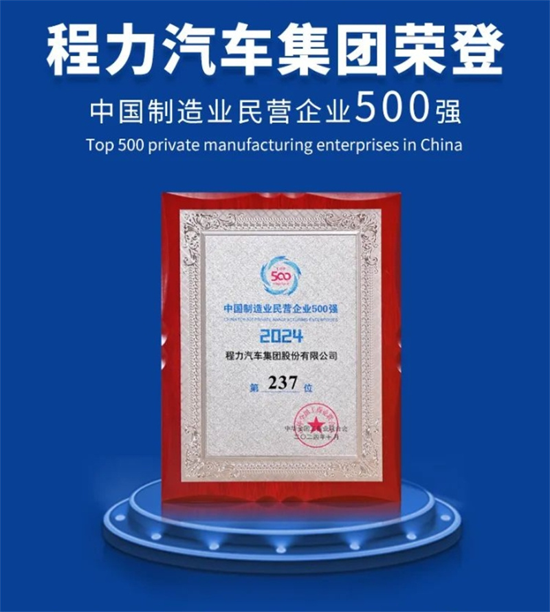 程力汽車集團再次榮登2024中國民企500強,改革創新建世界一流企業