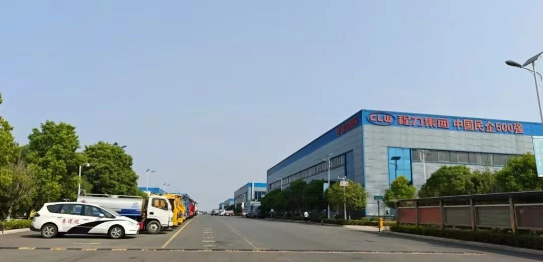 工廠南大門,中國(guó)民企500強(qiáng)slogan 既是程力人的榮耀 更是全球最大專汽頭部企業(yè)實(shí)力的象征