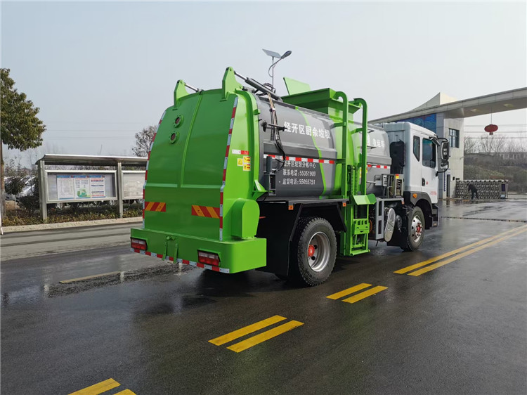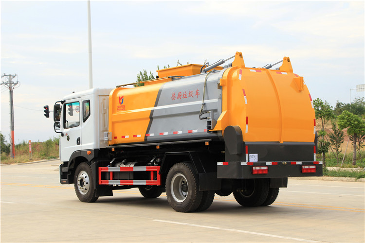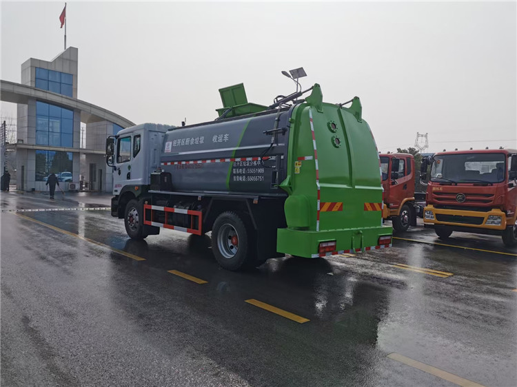 東風(fēng)多利卡D9國六10方餐廚垃圾車底盤配置:采用東風(fēng)D9系列新款駕駛室,4500mm軸距,搭載國六(國Ⅵ)玉柴200匹馬力/康明斯230柴油發(fā)動機,法士特8檔變速箱,9T后橋,10.00R20鋼絲胎,ABS,標(biāo)配電動窗、中控鎖、鑰匙、日間行車燈、自動落鎖、斷氣剎、定速巡航、瞬時油耗,科技感十足,駕乘更舒適,GB7258新規(guī)。 東風(fēng)多利卡D9國六10方餐廚垃圾車上裝配置:罐體容積10方,采用4mm碳鋼制作,圓距形罐體,液壓系統(tǒng),配拉桿式提升機,可掛120/240升垃圾桶,推鏟卸料,具有干濕分離,罐體尾門液壓打開和鎖緊+手動鎖緊裝置,罐尾設(shè)液體自流閥,液位窗,后門液壓開啟。用于運輸液態(tài)垃圾,其特點操作簡單,密封性好,無泄漏,無異味,常用于餐館的垃圾轉(zhuǎn)運處理。 此款環(huán)衛(wèi)垃圾車可加裝配置:1、罐體內(nèi)部固液分離功能(全推推板,不銹鋼泔水分離網(wǎng)板);2、罐內(nèi)加熱功能(用于嚴寒地帶防止罐內(nèi)餐飲垃圾凍結(jié)凝固,采用柴油燃燒機加熱,加熱速度快效果好,可設(shè)置高低溫實現(xiàn)自動溫控);3、稱重功能(垃圾桶提升架稱重計量);4、罐體清洗裝置(加裝高壓泵與高壓水槍);5、吸污功能(利用真空吸污裝置直接將餐飲垃圾吸入罐體)