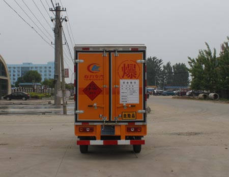 廂體頂部封閉,不可開啟。運輸介質:黑火藥,壓縮黑火藥,電引爆雷管,爆破炸藥,點燃導火索,專用煙火制品。運輸類項號:1.1D,1.1D,1.1B,1.1D,1.4G,1.1G。 選裝側面不開門;選裝新前圍及前部燈具,選裝保險杠。配裝限速裝置,最高時速80km/h。僅采用有前盤制動器和安裝ABS的底盤。僅采用排氣管前置的底盤。僅采用子午線輪胎。安裝帶衛星定位功能的行駛記錄儀。僅采用LJ465Q-2AE發動機。ABS系統控制器型號/生產企業:CM-4XL-15VIf/廣州市科密汽車制動技術開發有限公司。僅選用軸距為2370mm的底盤。
