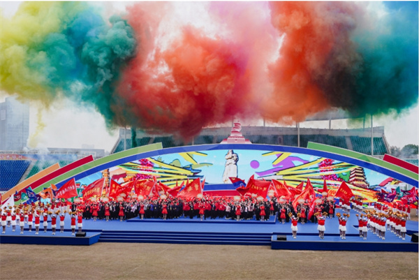 秋高氣爽,濱湖體育場歡聲雷動,場內群眾以廣場舞、花鼓戲等表演笑迎八方賓朋。