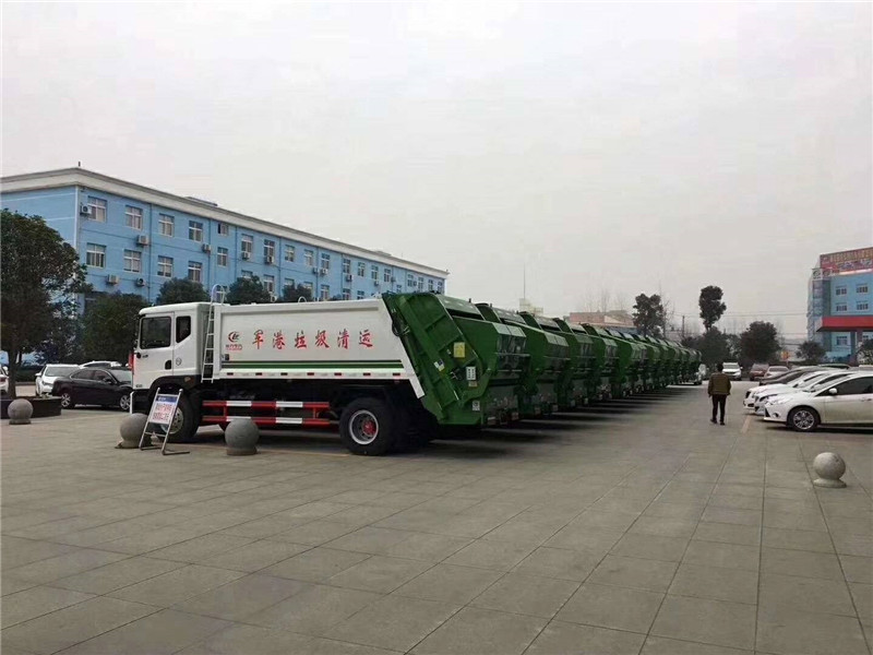湖北程力批量環衛垃圾車壓縮垃圾車發車圖片,東風D9多利卡12-14方壓縮垃圾車批量發車圖片: