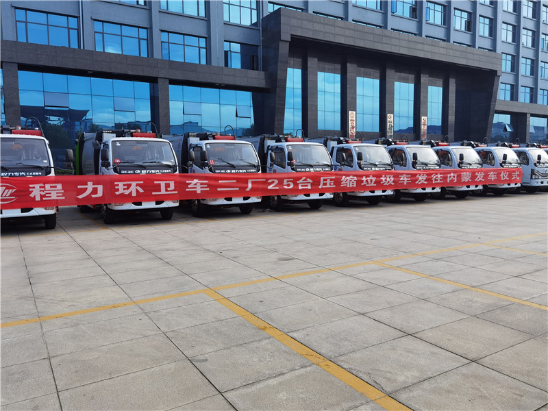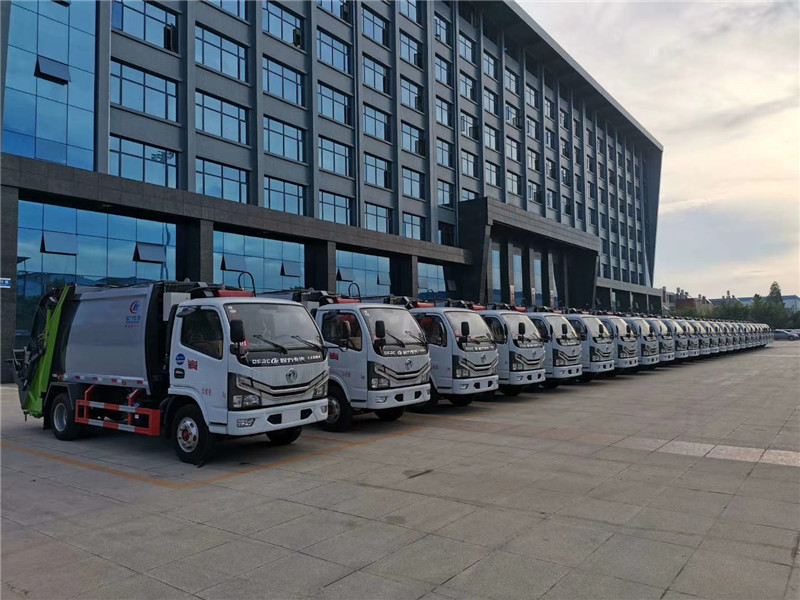 湖北程力批量環衛垃圾車壓縮垃圾車發車圖片,東風多利卡5-6方壓縮垃圾車批量發車圖片