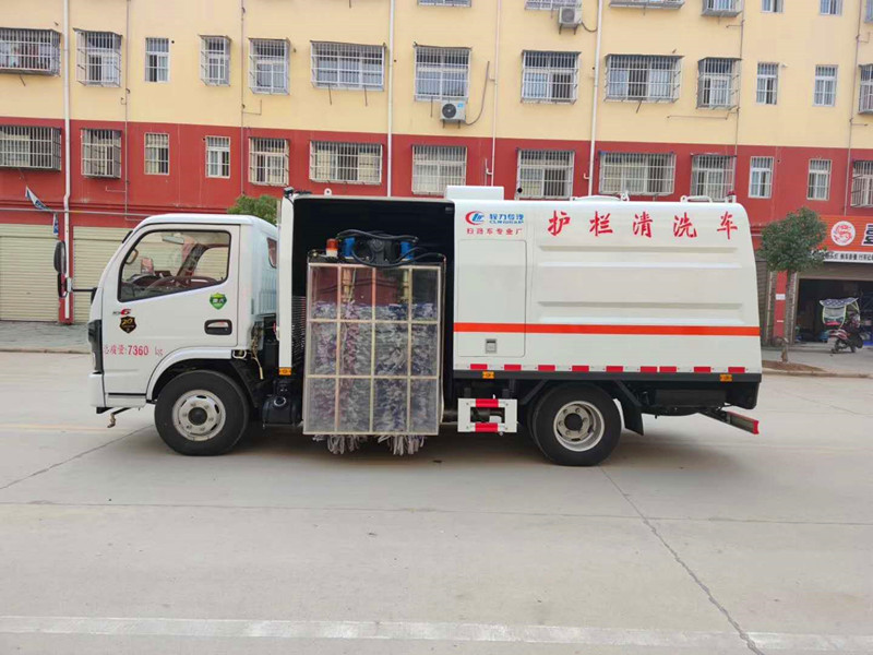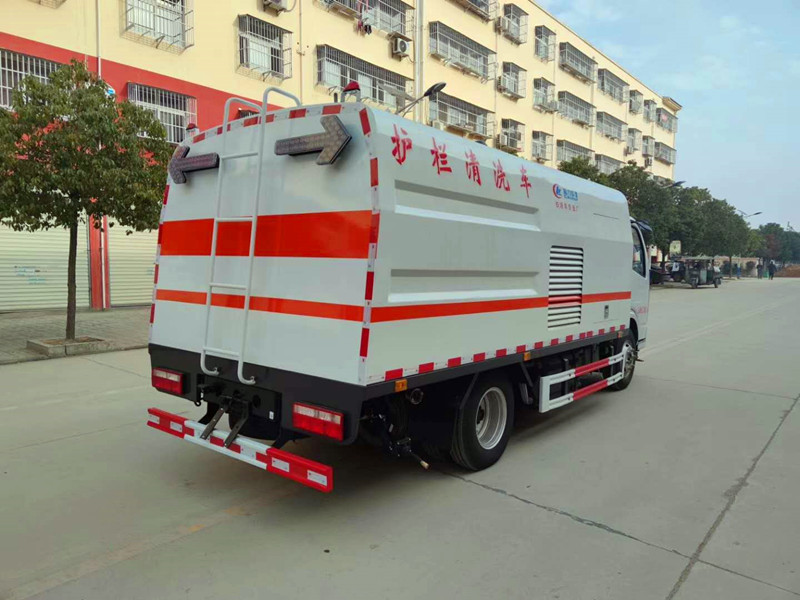 湖北程力國六東風(fēng)多利卡城市護(hù)欄清洗車主要組成部分 電 氣 系 統(tǒng) | 組 成 | 由底盤車電路和副發(fā)動(dòng)機(jī)電氣部分及專用工作裝置操作控制電路組成。 | 底盤車系統(tǒng)電壓 | 12 V | 工作裝置系統(tǒng)電壓 | 12 V | 清 洗 裝 置 | 型式 | 在正副駕駛室后車架一側(cè)對(duì)稱布置4個(gè)清洗刷,由液壓馬達(dá)驅(qū)動(dòng),刷子升出后內(nèi)外可液壓自動(dòng)調(diào)節(jié)。 | 清洗刷直徑 | cm | φ50 | 清洗刷馬達(dá)轉(zhuǎn)速 | r/min | 300 | 單個(gè)清洗刷數(shù)量 | 55 | 清洗高度cm | 140-160 | 清洗原理 | 采用兩沖、四刷的清洗工藝,兩面同時(shí)清洗,使清洗更加徹底。清洗過程:首先刷輥前面的兩排噴水管噴出水將護(hù)欄充分預(yù)濕,車體前移的過程中,中間的兩排刷輥對(duì)護(hù)欄依次進(jìn)行刷洗,最后由刷輥后面的兩排噴水管噴出水將殘留的灰塵沖去 |