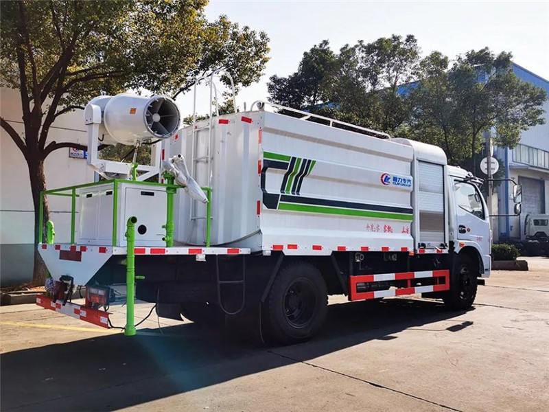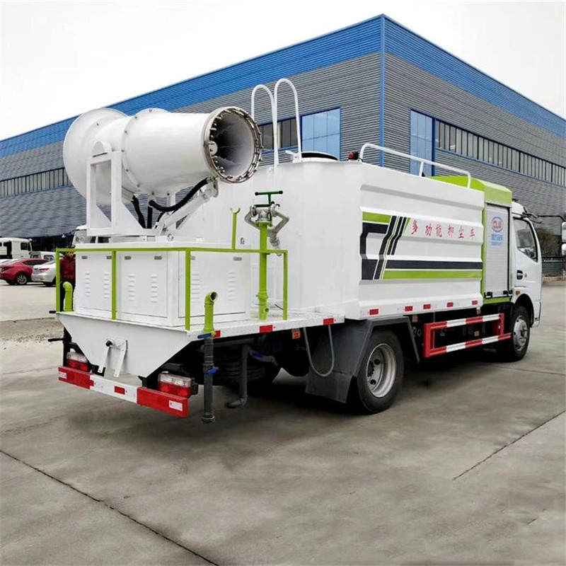 1、整車裝備、結構緊湊、布局合理、部件做工精細、產品配置完善、操作性能好。 2、霧炮射程遠、覆蓋面積大、霧粒細小、與飄起的塵埃接觸時,形成一種潮濕霧狀體,能快速將塵埃抑制降沉。 3、適用范圍廣、工作效率高、可邊行駛邊噴霧、噴霧速度快、對塵埃有較強的穿透力和霧珠附著力、能有效地節約用水量和減少環境污染。 4、遙控/手動兼容、起動快捷、使用安全、靈活方便、性價比高。 5、微電機控制水平旋轉,液壓馬達控制俯仰角度,交換角度速度快。 | 湖北程力國六多利卡8方抑塵車(方罐)程力威牌CLW5120TDYE6型多功能抑塵車圖片價格: